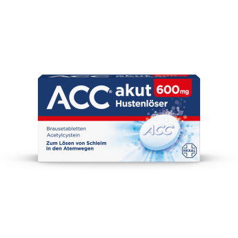 ACC® akut 600 mg Z Hustenlöser, Brausetabletten: Wirkstoff: Acetylcystein. Anwendungsgebiet: Zur Schleimlösung und zum erleichterten Abhusten bei Atemwegserkrankungen mit zähem Schleim. Warnhinweis: