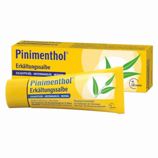 Pinimenthol® Erkältungsbalsam mild Eucalyptusöl Kiefernnadelöl. Anwendungsgebiete: Zur Inhalation und äußerlichen Anwendung zur Besserung der Beschwerden bei Erkältungskrankheiten der Atemwege mit